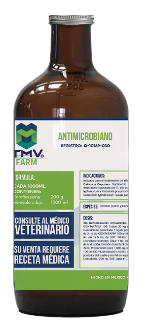 Quinolona de amplio espectro, indicada para el control de enfermedades respiratorias de las aves y becerros, ocasionadas por gérmenes Gram + y -, susceptibles a la enrofloxacina como: Bordetella, Manhemia spp y Mycoplasma spp, que ocasionan neumonía, bronconeumonía, bronquitis, laringitis u otra enfermedad respiratoria aguda o crónica.